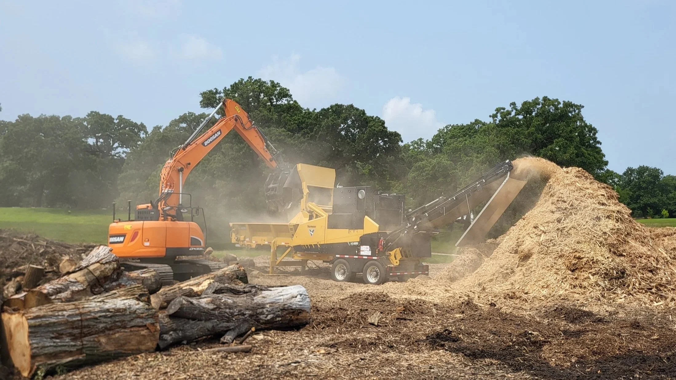 Utilize our 4 dump trucks and 1 side dump to haul anything from dirt or rock to demo or trees. If you need a machine hauled our lowboy with oversize permits can haul up to a 70,000lb machine.